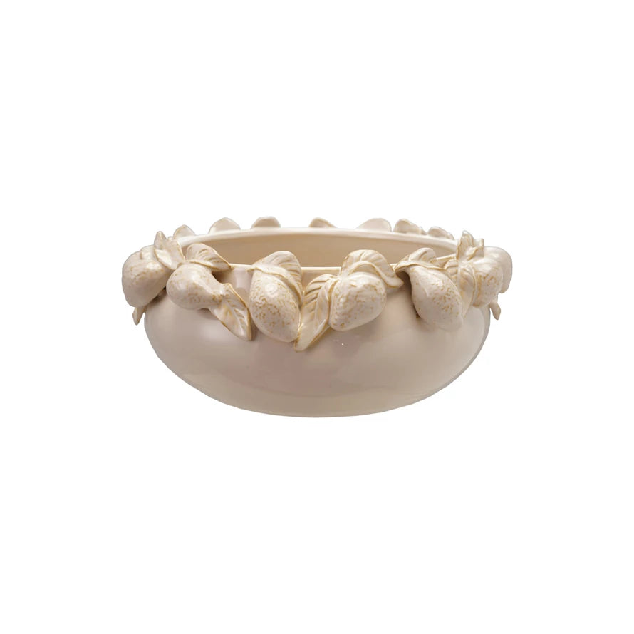 Elevate your table setting with this cream-colored stoneware bowl, featuring delicately crafted 3D lemons along the rim. Its refined design combines artisanal charm with everyday functionality, making it perfect for serving salads, fruits, or snacks with a touch of elegance. Durable and timeless, this bowl adds a sophisticated accent to any dining experience.