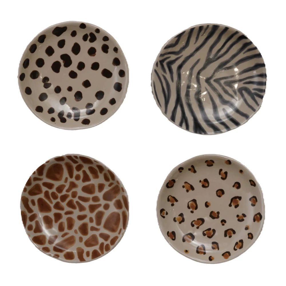 Add a playful touch to your tabletop with this Stoneware Dish with Animal Print Decal, designed in the charming, art-forward spirit of Creative Co-Op. Perfect for snacks, jewelry, keys, sauces, or small bites, this versatile dish blends function with whimsical character.