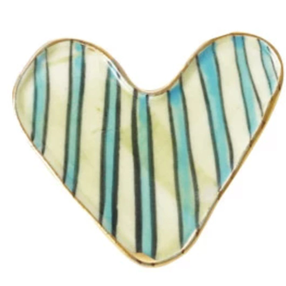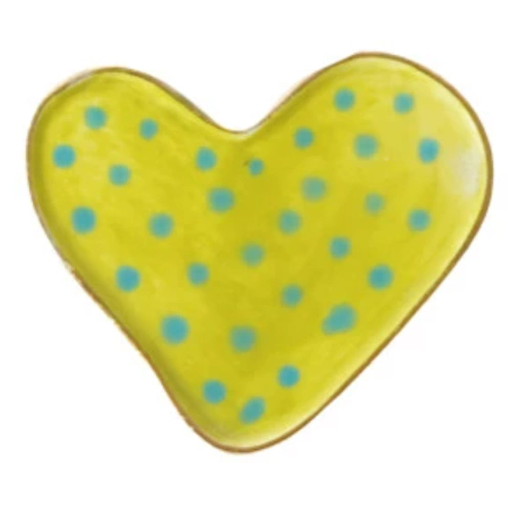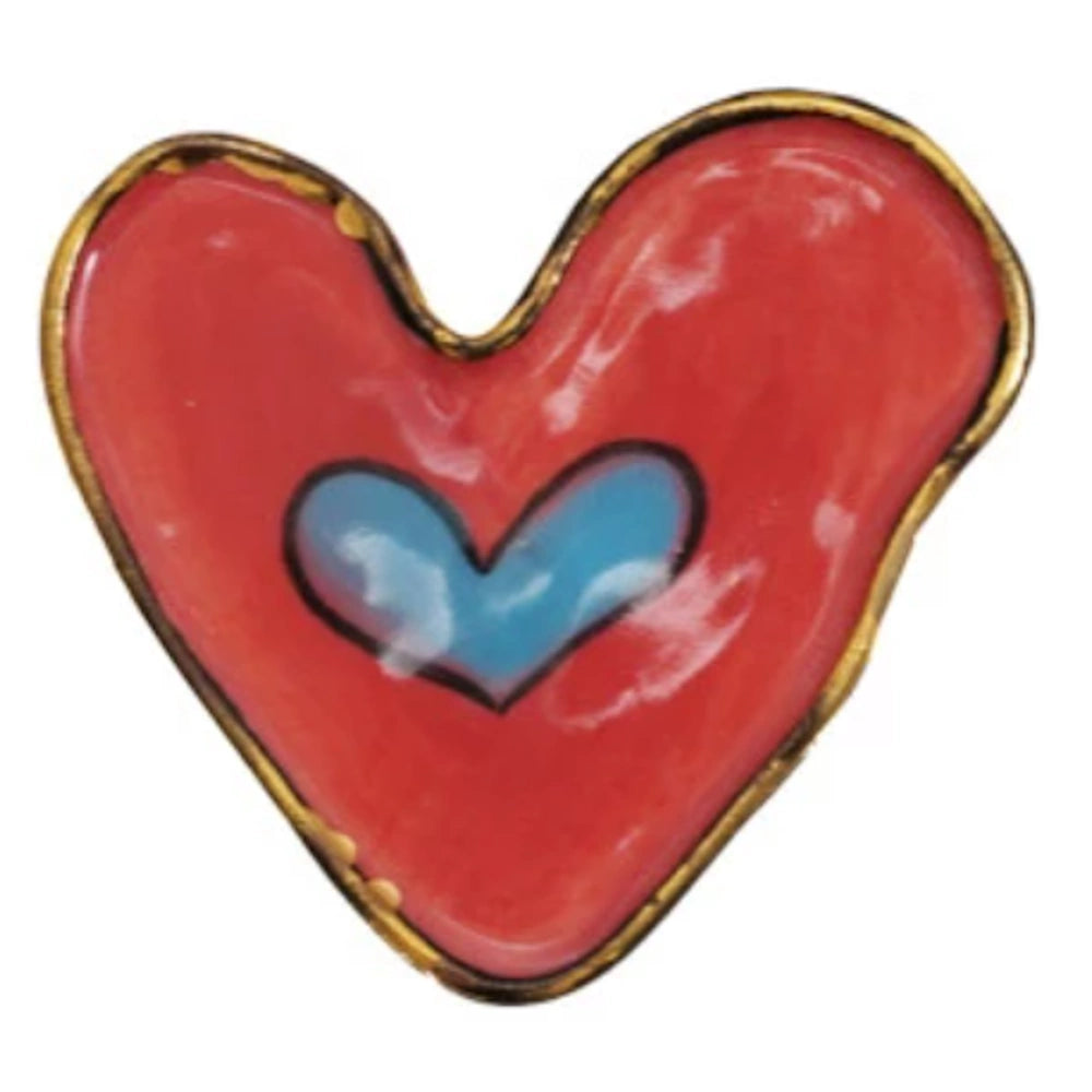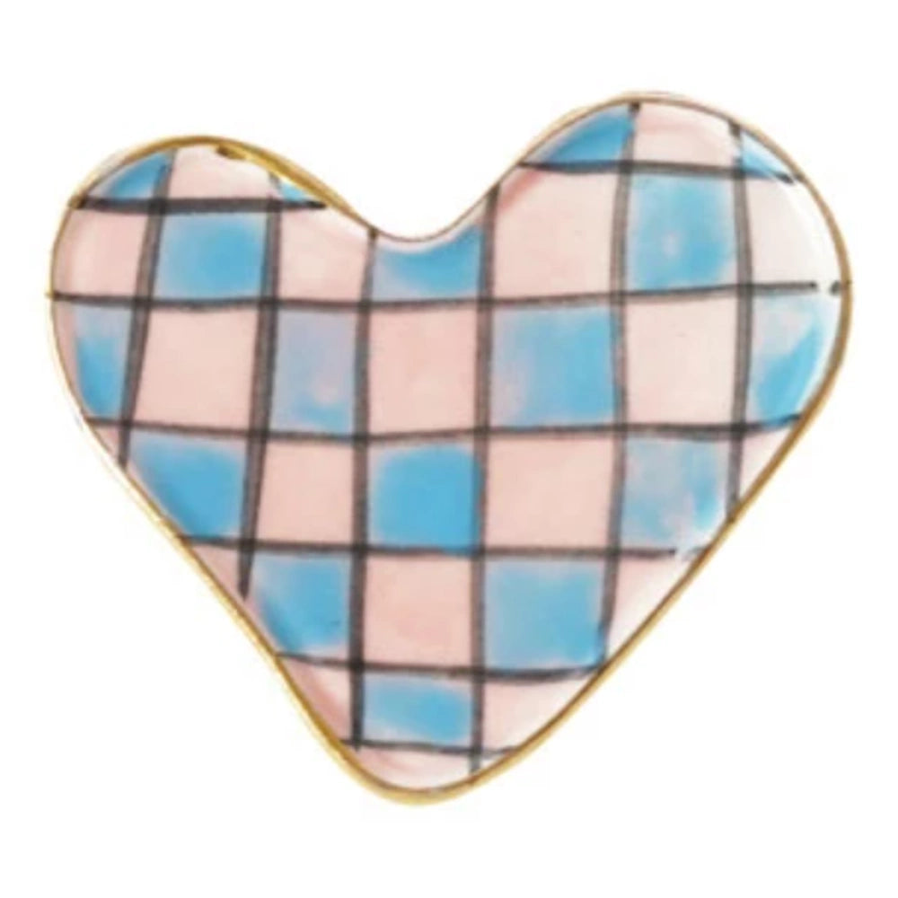 Add a sweet, artisanal touch to any space with this Hand-Painted Stoneware Heart-Shaped Magnet, beautifully designed in eight unique patterns. Finished with an elegant gold electroplated edge, each magnet brings warmth, whimsy, and personality to your fridge, office board, or gift wrapping.