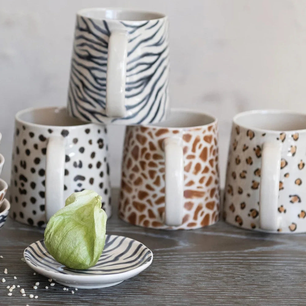 Sip in style with this Stoneware Mug with Animal Print Decal, a playful yet sophisticated addition to your daily routine. Inspired by Creative Co-Op’s artful, expressive design language, this mug brings a touch of personality to your morning coffee, afternoon tea, or cozy evening cocoa.