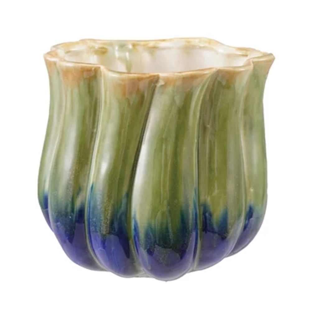 Featuring elegant fluted texture and a soft two-tone finish, this planter adds depth, movement, and modern charm to any space.