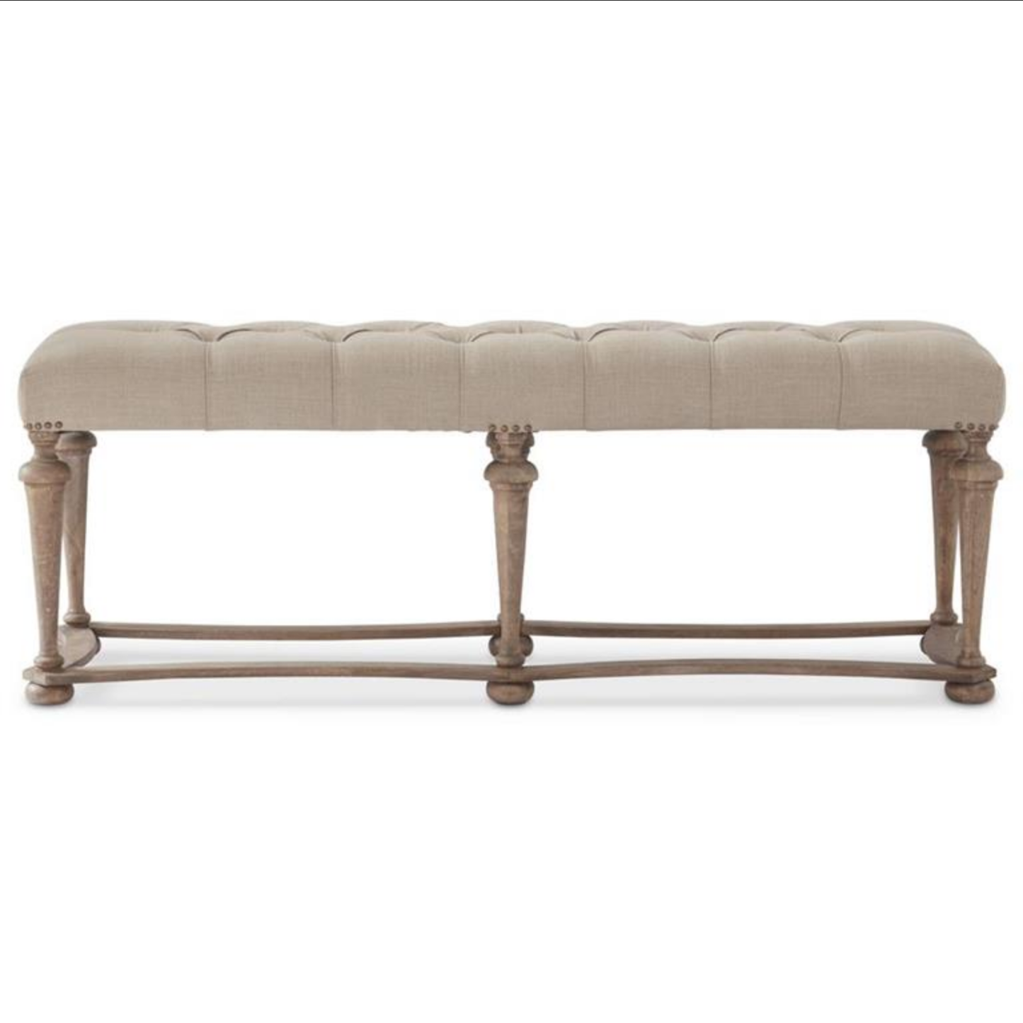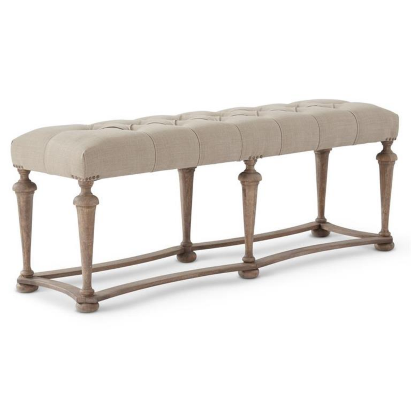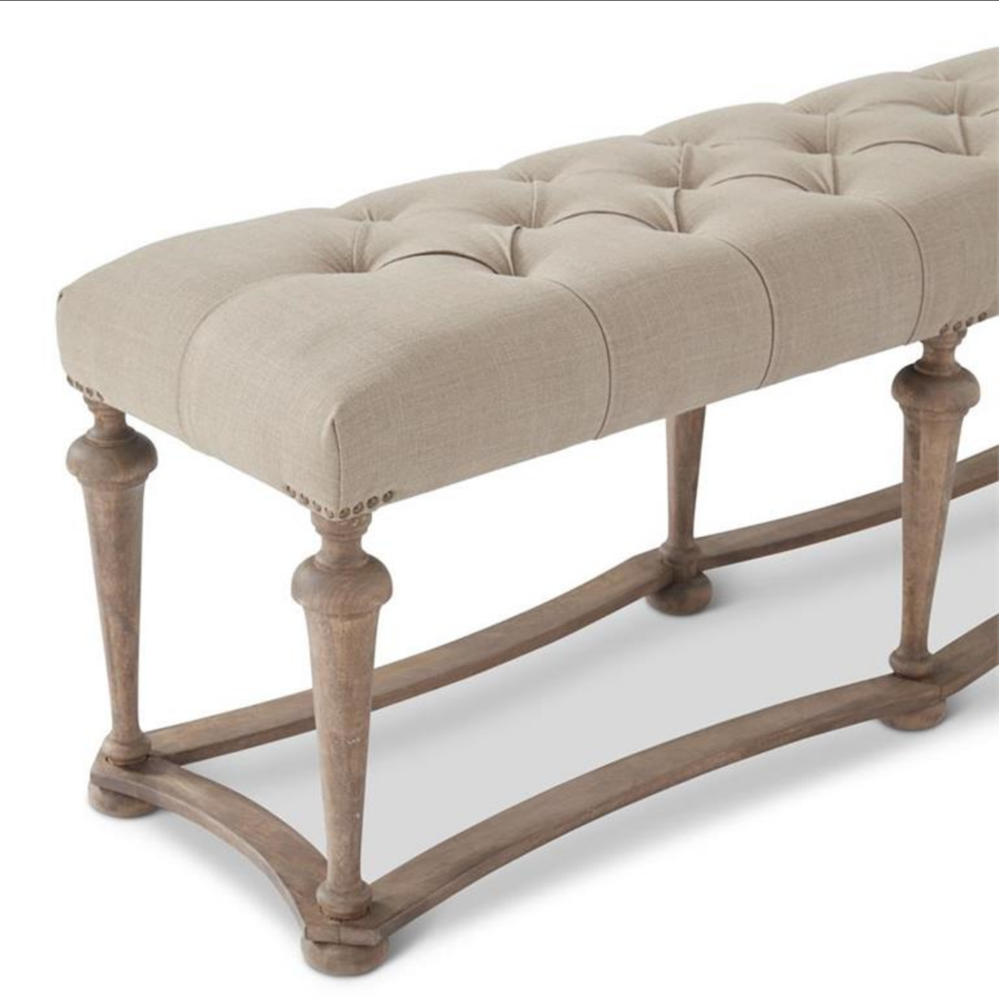 Tan Linen Upholstered Tufted Mango Wood Bench
