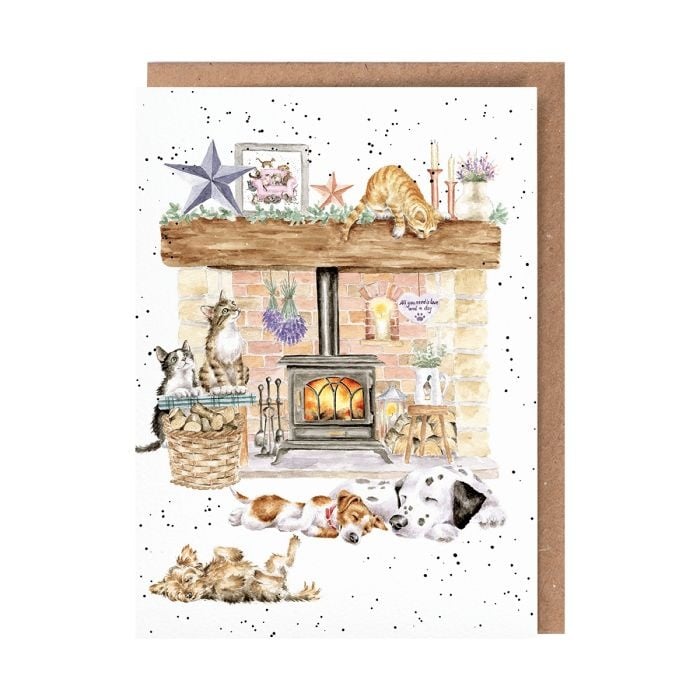 Featuring a lovely fireplace scene with sleeping dogs and cats this card is perfect for any occasion. The image is printed on high quality, sustainably sourced textured board and is left blank inside for your own message. Supplied with a recycled envelope.