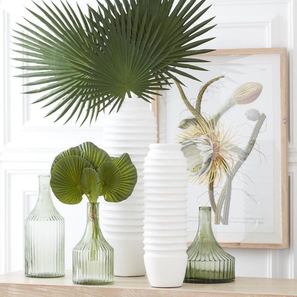 Refresh your home with color and texture, shop these K&K Interiors Glass Ribbed Vases now at MISS DAISY'S Home & Decor.