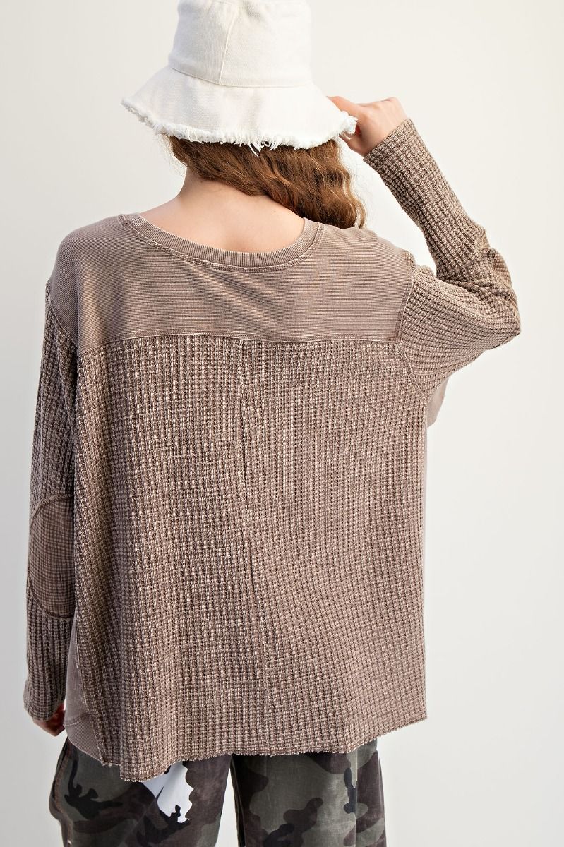 Embrace cozy vibes in this Washed Thermal Waffle Knit Top, designed with a relaxed fit and mineral wash for that perfectly lived-in look. Its wide boat neckline and drop shoulders add effortless charm, while the soft waffle knit texture keeps you comfy all day. With a petite length of 25.25" and a bust of 27.75", it’s your new go-to for casual, easy style that feels as good as it looks.