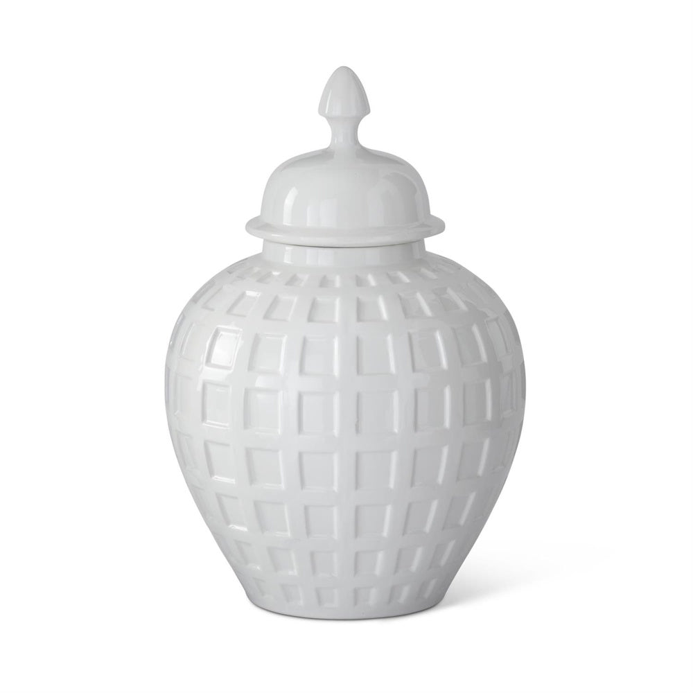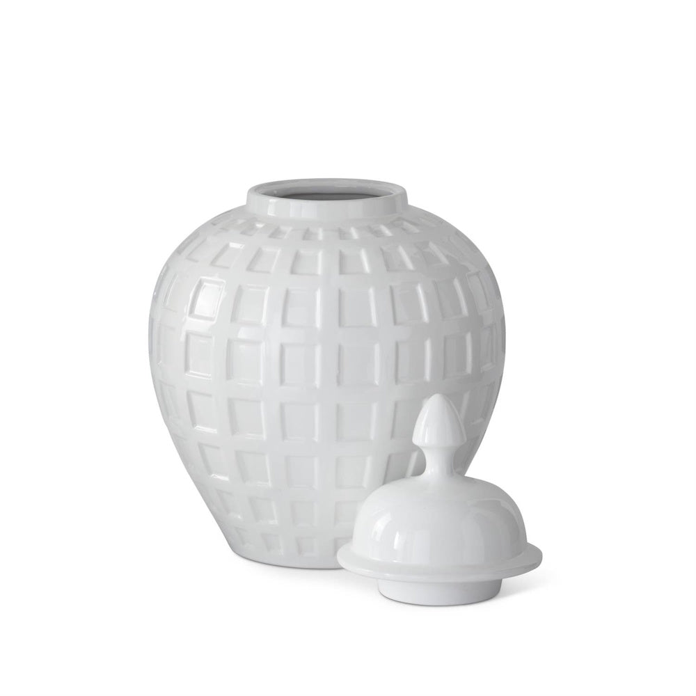 White Ceramic Grid Pressed Ginger Jar