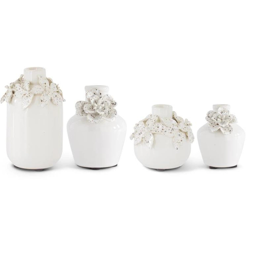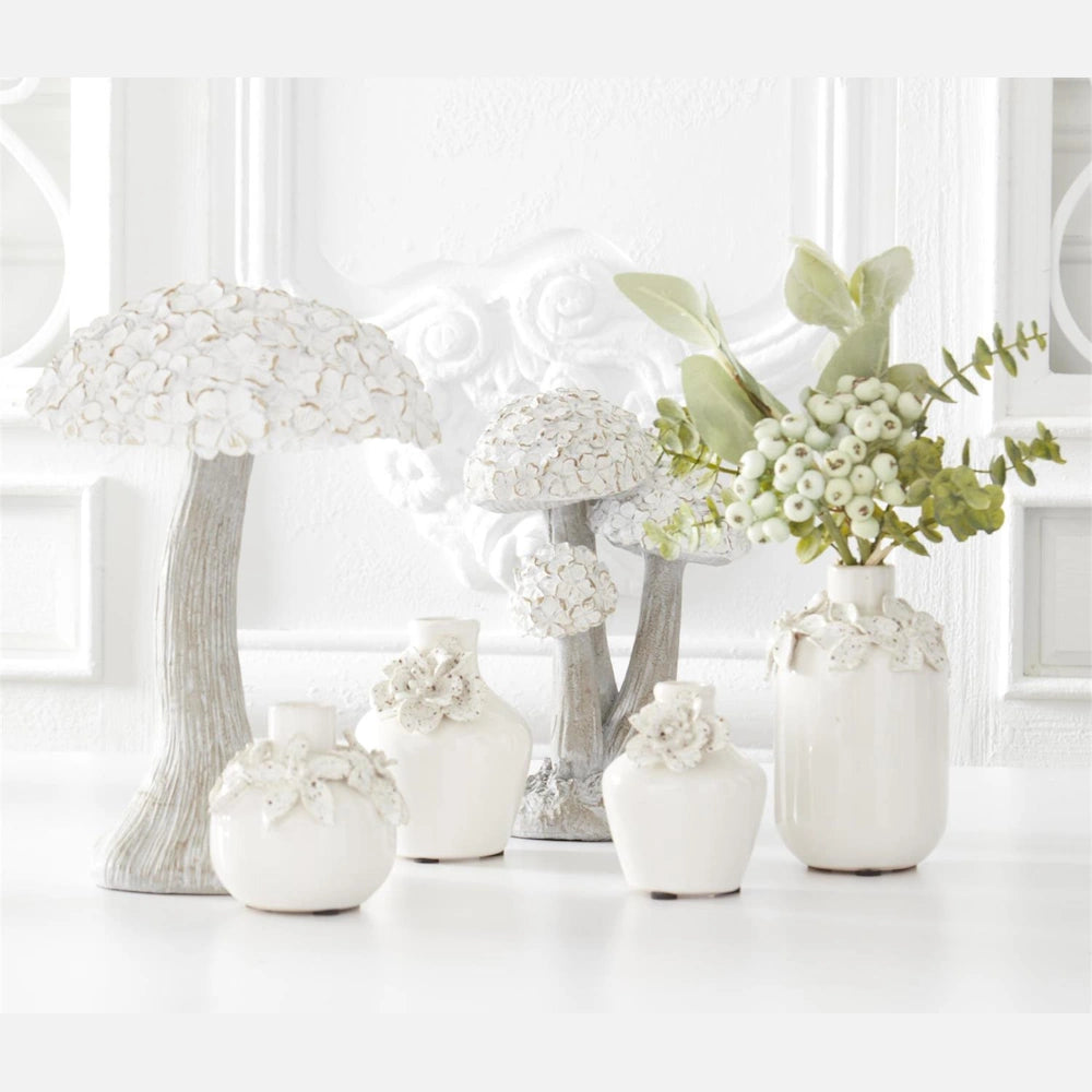 These elegant vases feature a smooth white finish adorned with delicate raised floral details, creating a sophisticated, textured look. Perfect for fresh or faux flowers, centerpieces, or standalone décor, they bring timeless charm to any space, from modern minimalism to classic elegance.