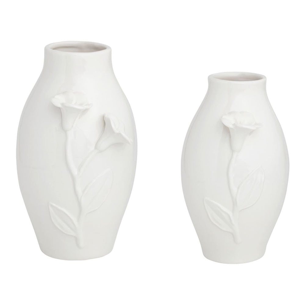 Featuring delicate floral detailing and a crisp white finish, these vases instantly brighten any room while complementing farmhouse, cottage, or traditional interiors.